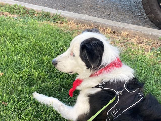 He has one blue eye and one marbled.