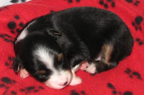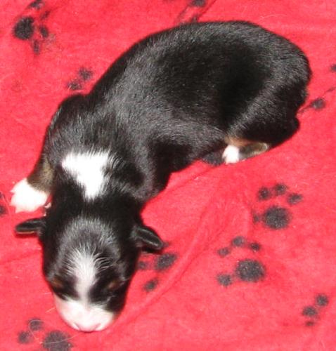 Max's litter name was Alex for Alexander Graham Bell Black Tri Male from the Sizzle X Max litter
